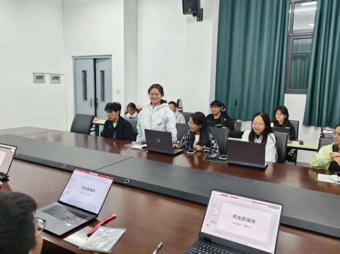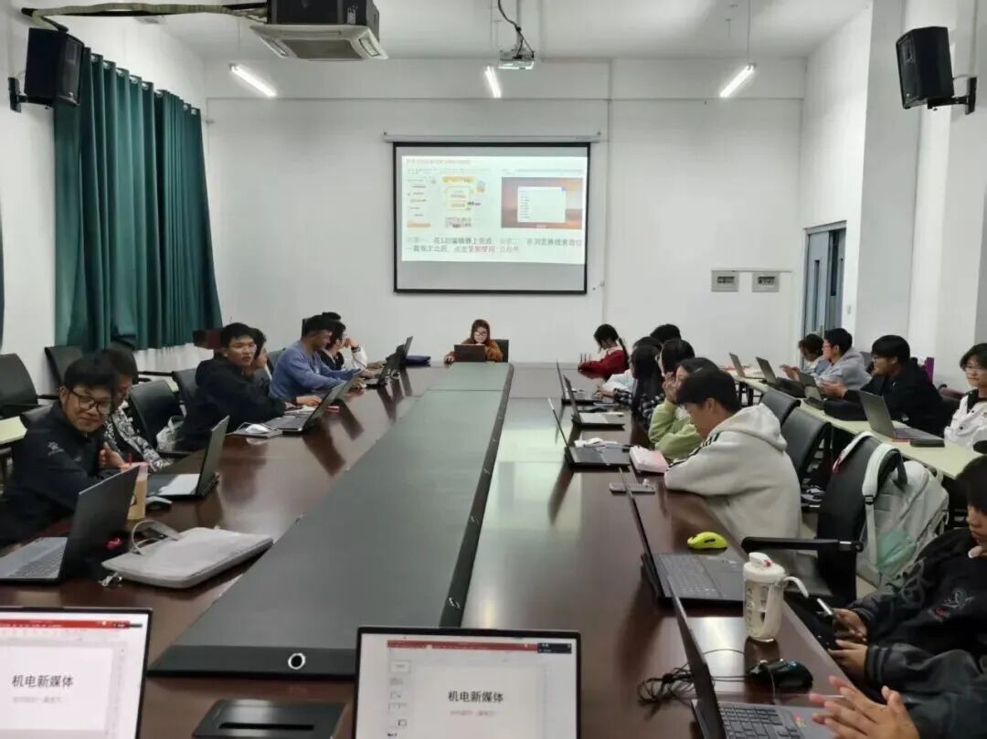 (本网讯:图|邓文杰/文|周天宇)当25级新生满怀憧憬踏入大学校园,机电学院新媒体团队也迎来了新鲜血液。10月23日,机电学院新媒体新老成员于机电楼509会议室开展了机电学院新媒体培训会暨新成员见面会。会议由机电新媒体负责人陈昱茹主持,新媒体部长毛玉婷,袁涛以及25机电新媒体新成员参与此次培训会。