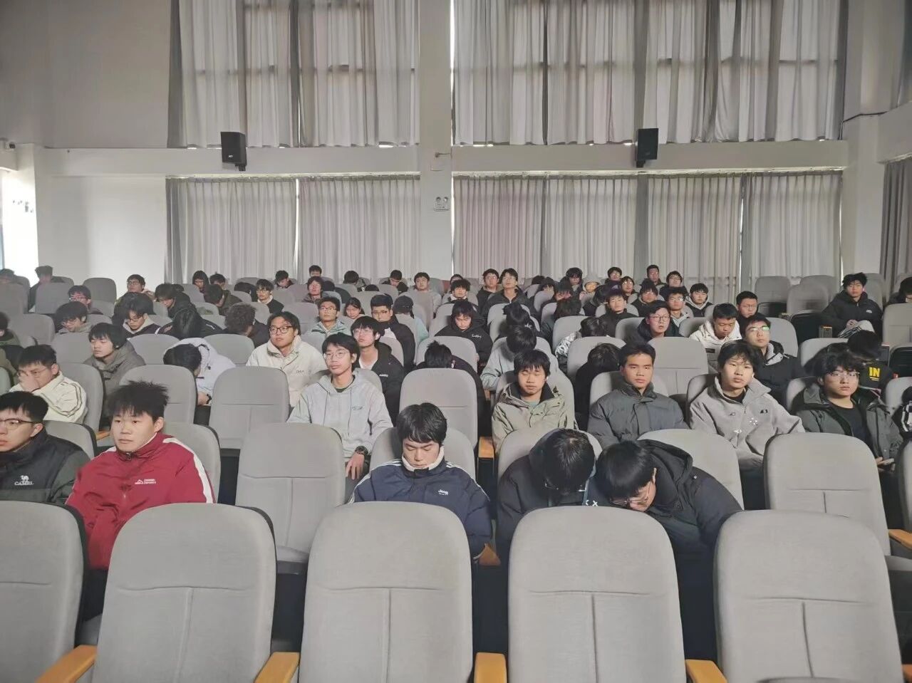 (本网讯:图|涂语瞳/|曾彦翔)为丰富同学们元旦假期文化生活,厚植家国情怀,传承红色记忆,11日,机电学院在第三报告厅隆重举办元旦主题观影活动。机电学子齐聚一堂,共同观看红色影片《南京照相馆》,以光影为媒回望峥嵘岁月,在历史回响中开启崭新一年的奋斗篇章。