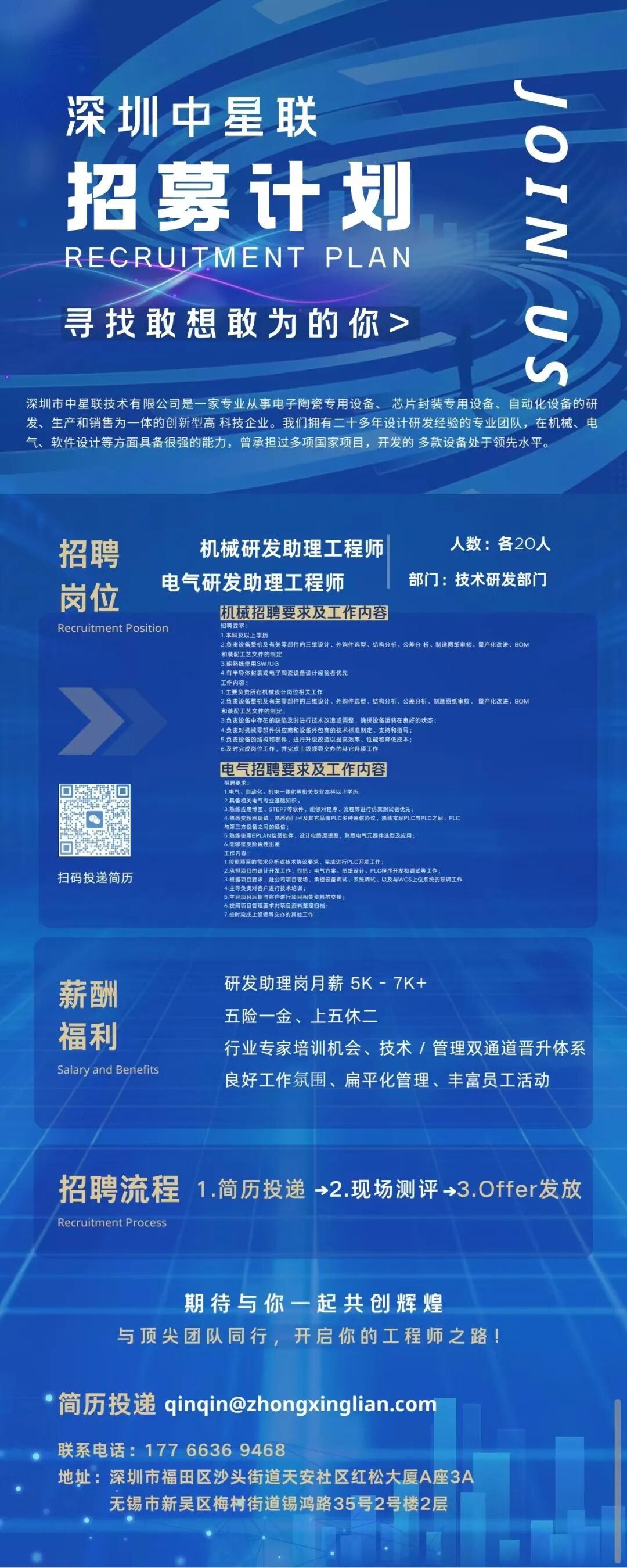 在当今快速发展的时代,就业市场的需求日益多样化。深圳市中星联技术有限公司作为专注电子陶瓷专用设备、芯片封装专用设备及自动化设备研发、生产与销售的创新型高科技企业,依托二十余年研发沉淀,组建了专业过硬的核心团队,在机械、电气、软件设计领域实力强劲,曾成功承担多项国家项目,自主研发设备达行业领先水平,此次携手我院开展专场招聘,为学子提供优质就业机遇。