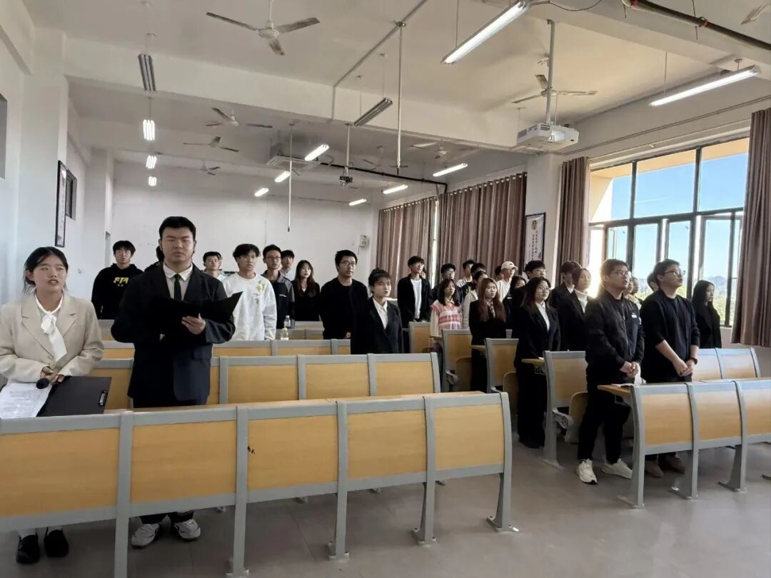 活动伊始,全体与会人员起立,奏唱中华人民共和国国歌,激昂的旋律回荡在会场,彰显着青年一代的爱国情怀与责任担当。