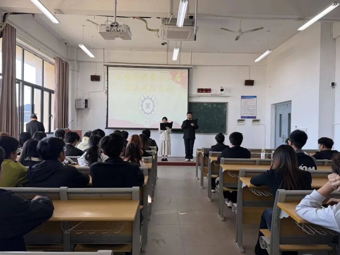 国歌奏毕,机电学院学生党支部书记吴永恒代表学院团委发言。他回顾了学院共青团过去一年在思想引领、校园活动、志愿服务等方面取得的丰硕成果,肯定了第十二届团委委员的辛勤付出,并对青年学子提出殷切期望,鼓励大家以饱满的热情投身团学工作,在实践中锤炼本领、增长才干,为学院发展贡献青春力量。