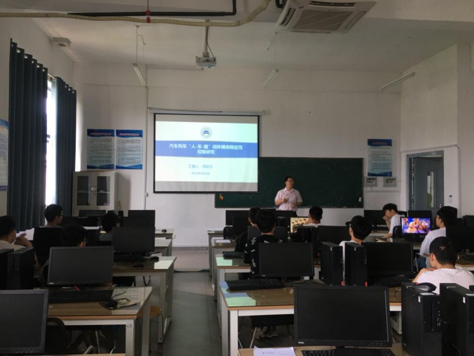 邓召文副教授以“汽车列车‘人-车-路’闭环横向稳定性控制研究”为题,分析了研究铰接式车辆的横向动力学和开发适合半挂汽车列车的驾驶员模型的意义,介绍了当前国内外的研究现状以及存在的相关问题。之后深入浅出的介绍了他们近年来从事的汽车列车驾驶员模型、汽车列车主动转向控制、电驱动汽车列车横摆力矩控制等方面的研究及实验情况。