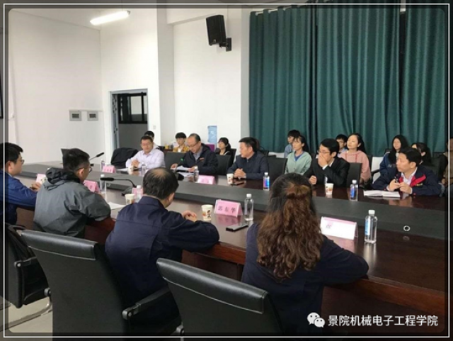 下午14:00,在机电学院会议室召开了校企三方合作洽谈会议。参加会议的有副校长吴丁、机电学院郑立斌院长、毛鹏飞书记、汪兆栋博士以及自动化、机械专业的老师和学生,会议由郑立斌院长主持。首先,郑院长对机电学院的师资结构、专业教学、实验实训以及近年的就业情况等基本情况做了简要的介绍。
