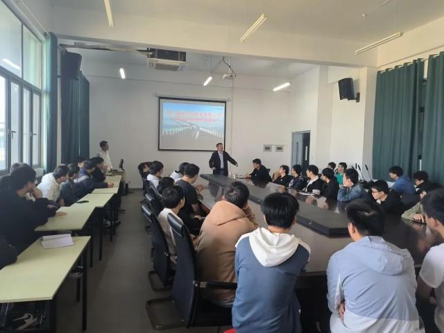 (本网讯:图|黄贻善/文|李智)11月4日,镇江蓝舶科技在机电大楼五楼会议室召开招聘会。机电学院党委书记毛鹏飞,副院长汪兆栋,教师戢金国,机电学院毕业生等参加,镇江蓝舶科技总经理胡颖健亲自作为主讲人,为机电学院学生介绍相关情况。