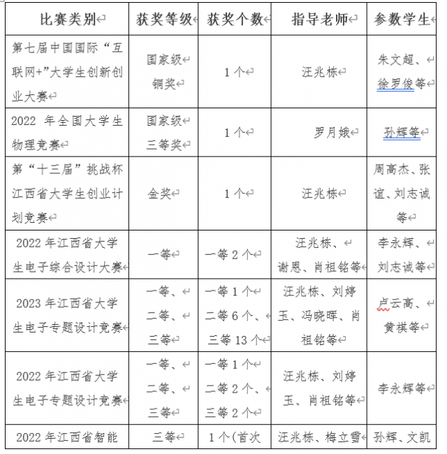 近两年,各大专业竞赛共获得国家级奖项3项,省级一等奖10余项,各大奖项累计有50余项。主要成绩如下: