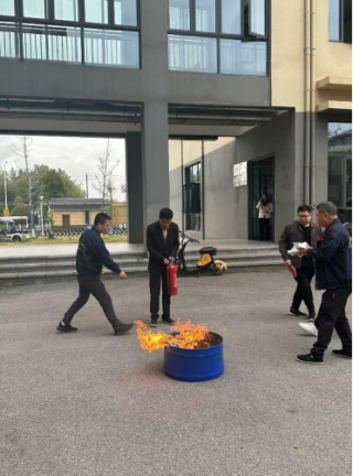 机电楼外,熊碧浪先给教师们讲解了使用灭火器的小窍门:提、拔、握、压。第一步,提,使用灭火器的时候要先将灭火器提起,保持水平垂直状态,将灭火器摇晃几次,这样可以使干粉松动,避免出现干粉堆积成块。第二步,拔,使用前要拔掉灭火器的金属环,这样才能喷出干粉,如果想要拔掉插销,那要将插销另一头的铅封拔除。第三步,握,将灭火器瞄准火源,一只手握住喷管前端,控制好喷管喷射方向,另一只手提起灭火器提把。第四步,压,压住灭火器开关,这样才能使灭火器喷出干粉灭火。