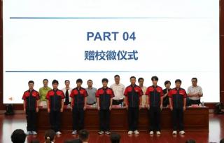 随着典礼进程推进,迎来了佩戴校徽的环节。双方教师满怀期望,亲手为新生代表佩戴上承载着两校荣誉与使命的校徽。这小小的校徽,不仅是身份的象征,更是两校合作精神的传递,寄托了对新生们殷切的期望与祝福。