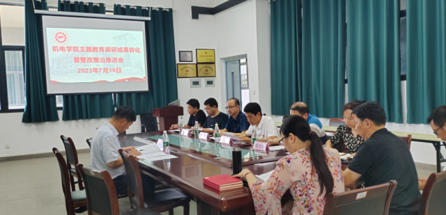 (本网讯:图|谭俊辉/文|郑佳红)7月19日上午,机电学院在机电大楼五楼党员活动室召开学习贯彻习近平新时代中国特色社会主义思想主题教育调研成果转化暨整改整治工作推进会。