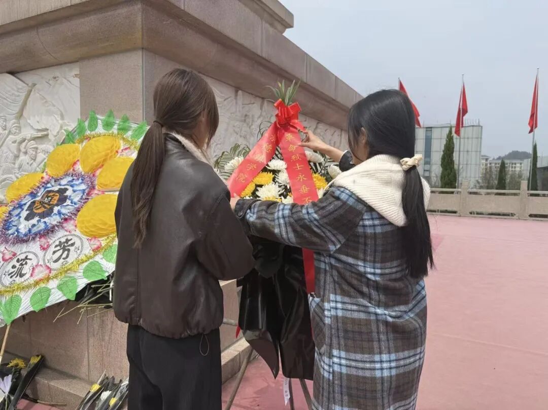 4月1日,在机电学院清明祭扫志愿服务活动中,两位同学主动请缨、冲锋在前,全程参与浮梁县革命烈士陵园的志愿服务工作,以实际行动践行青年担当,同时严格恪守活动纪律要求,展现了机电学子优良的作风素养。她们手持清洁工具,认真擦拭每一块烈士墓碑,仔细清扫陵园内的落叶、杂物,细致规整纪念碑前的花束摆放,用双手拂去岁月尘埃,用汗水守护英烈安息之地。从清晨到正午,她们始终坚守岗位、分工协作,以一丝不苟的态度完成每一项任务,用实际行动践行“奉献、友爱、互助、进步”的志愿精神,在劳动中传承红色基因,在服务中锤炼责任担当,成为陵园里一道温暖而坚定的青春风景线。