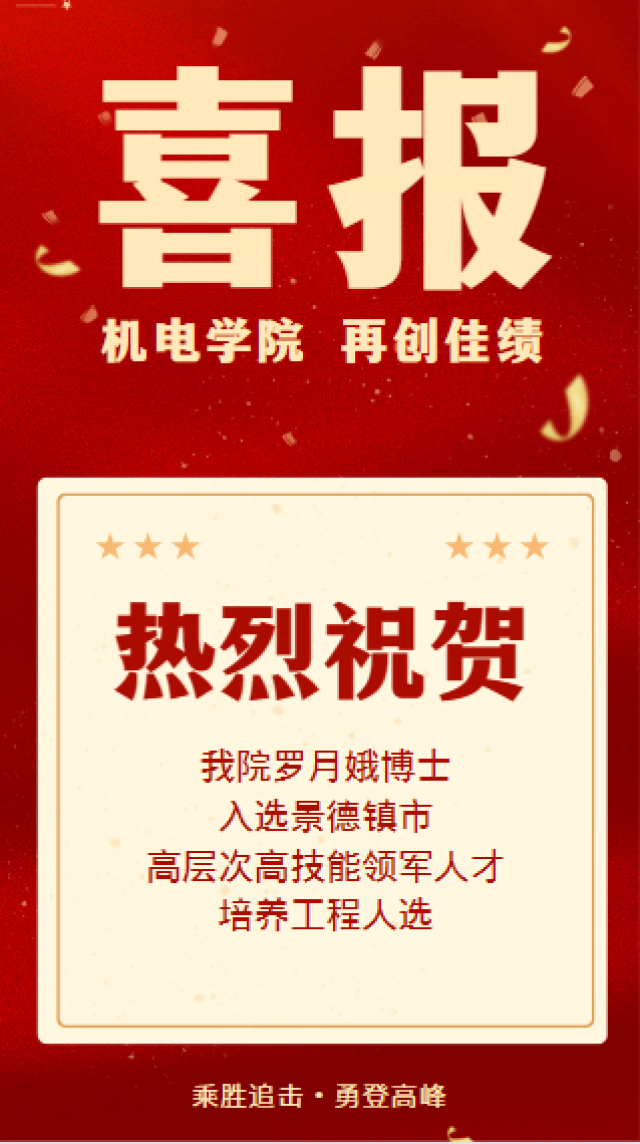 祝贺机电学院罗月娥博士入选景德镇市高层次高技能领军人才培养工程人选