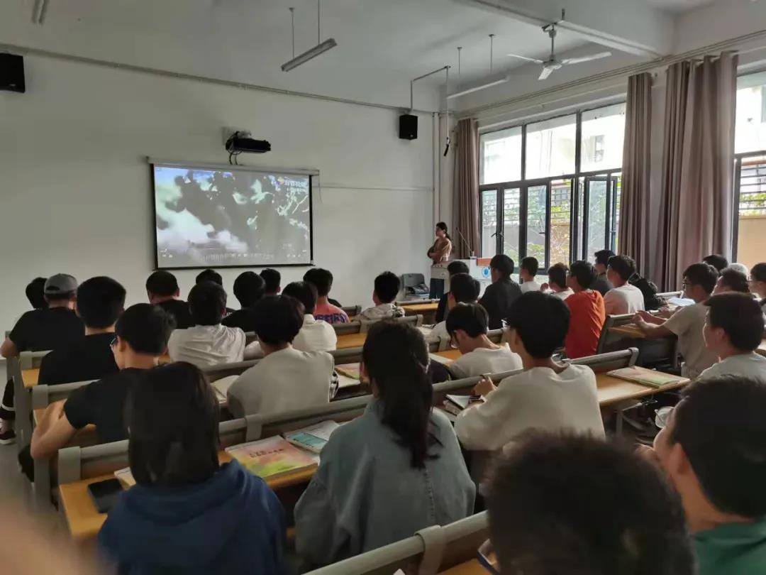 (本网讯:图|邱旺龙/文|杨悦凌)为弘扬爱国精神,拥护爱国统一战线,学习伟大的人民志愿军精神,不辱先辈之忠烈,不负和平之不易,2021年10月15日10:00,机电学院辅导员蔡琪利用课余时间组织20机设一班、二班学生在第二教学楼2205教室观看《长津湖》影片。
