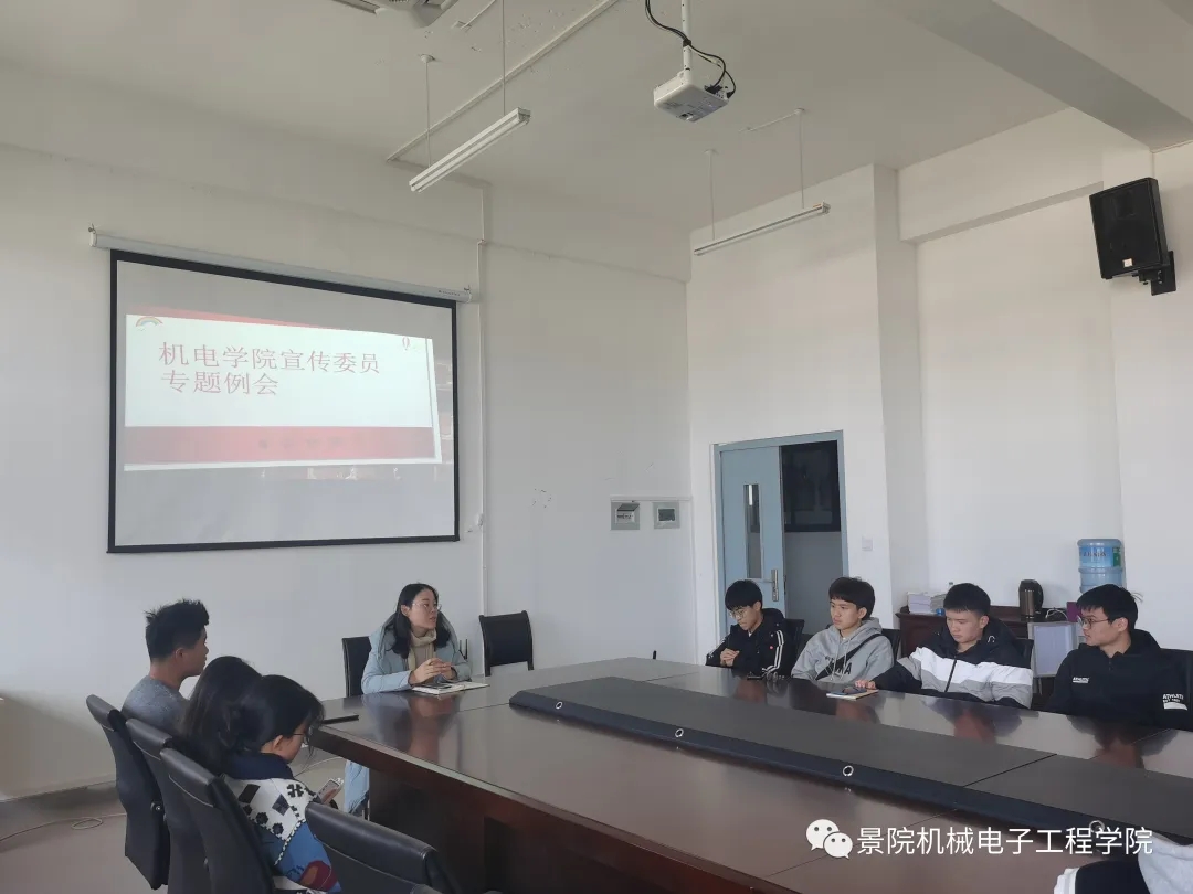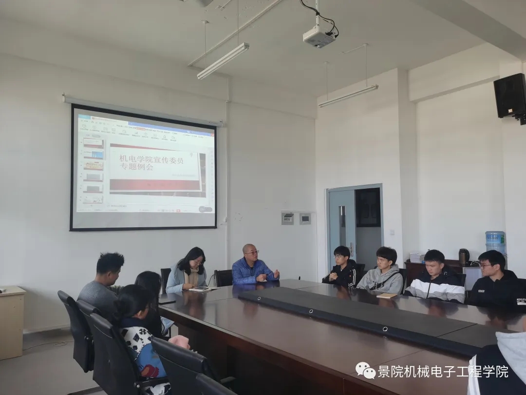 (本网讯:赵云君)为加强我院的网络宣传工作,促进我院各项工作及时通过网络传播到每个学生心中,机电学院于2020年12月1日中午在机电大楼五楼会议室召开了机电学院宣传委员第一次工作例会。