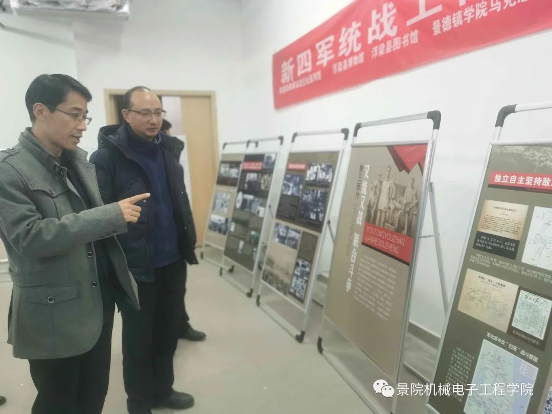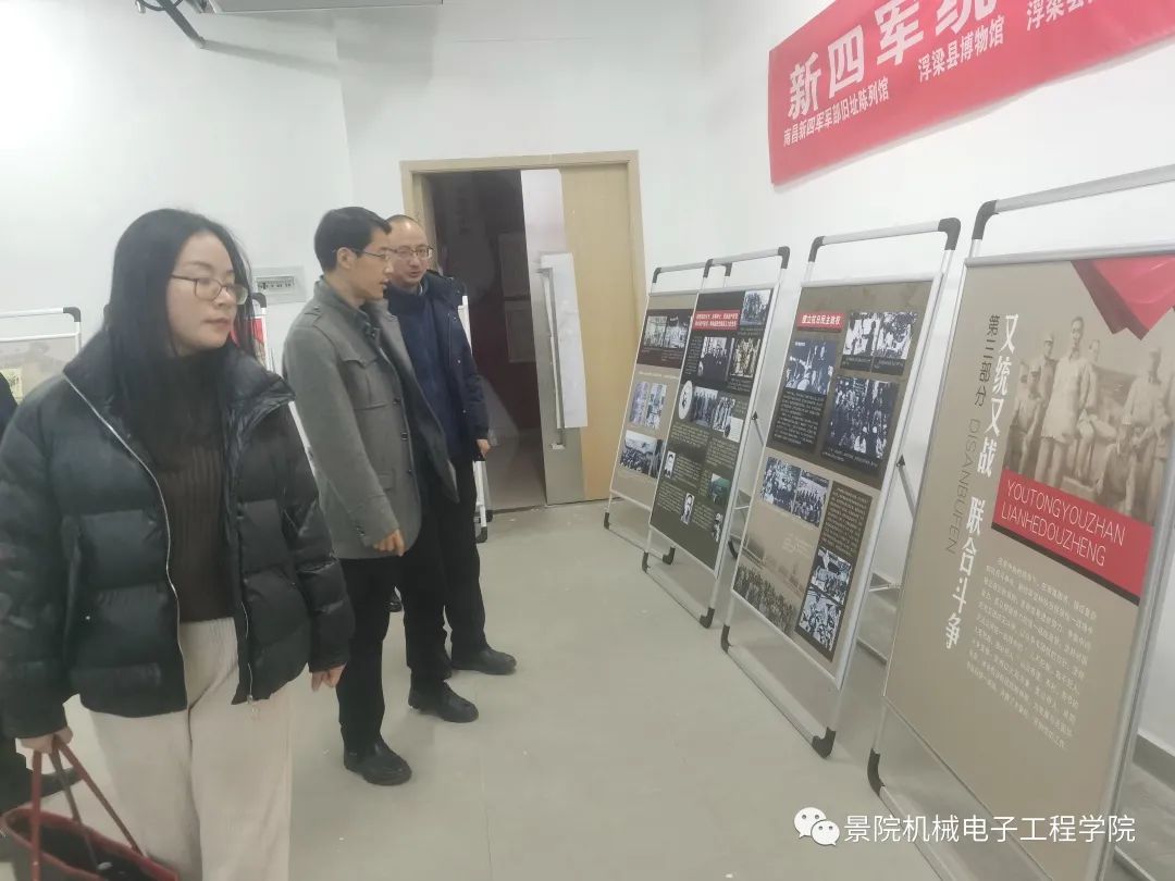 (本网讯:赵云君)为铭记优秀革命精神,传承红色基因。机电学院教工支部于12月10日下午前往马克思主义学院观看新四军统战工作图片展。此次展览由景德镇学院马克思主义学院和南昌新四军军部旧址陈列馆、浮梁县博物馆、浮梁县新四军研究会等单位在马克思主义学院二楼共同举办。