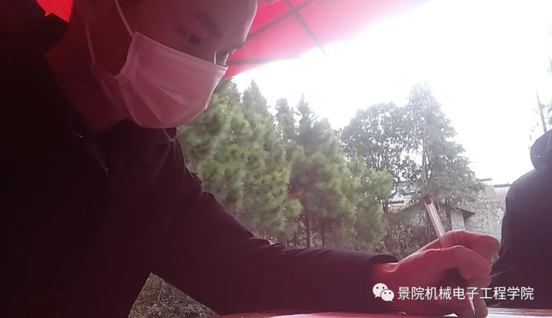在疫情防控工作开展后,每天被分期安排去社区门口给进出的人们进行测量体温和登记出入信息和帮助每一名村民注册和使用健康码,劝导村民不外出、不扎堆、勤洗手、勤消毒,以及去挨家挨户去给每一名村民测量体温和送口罩;在路口查看来往人员的通行证并为他们测量体温。从刘建平同学担任这份工作以来,没有丝毫的懈怠,工作学习两不误——在完成了学校开展的线上教学任务后,继续承担着志愿者的工作,并且利用在村值班的剩余时间进行网课学习。